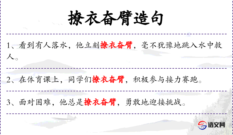 - 定语:撩衣奋臂(修饰主语“同学们”)