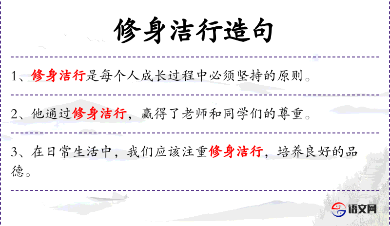 - 主语:“修身洁行”