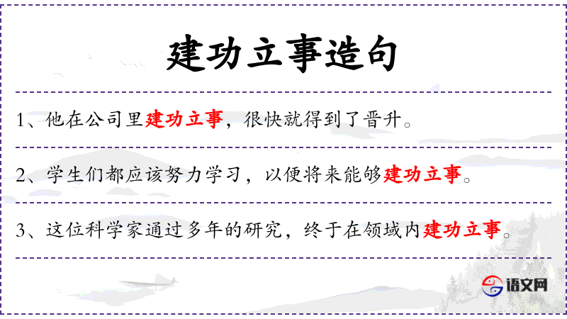 - 建功立事:这个成语源自**传统文化,强调个人在社会中的成就和贡献。