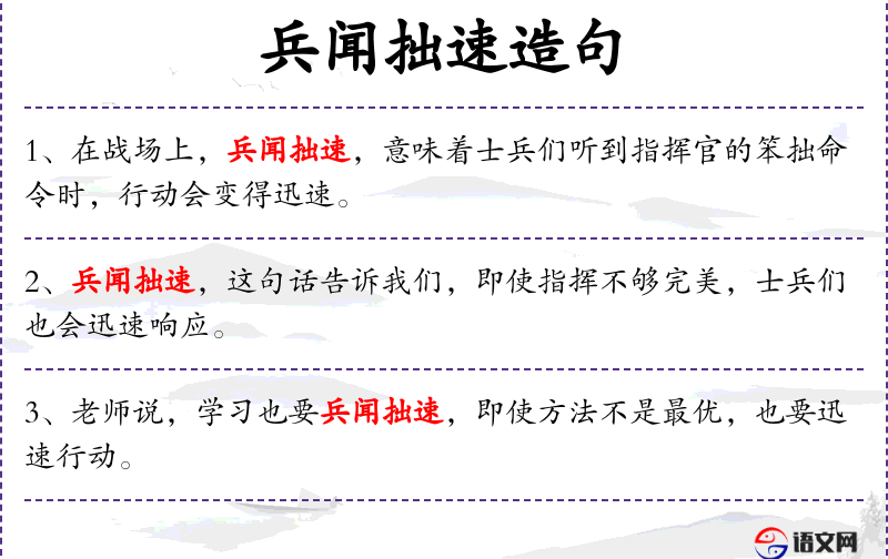 - 面对紧急情况,我们应迅速做出决策,如同兵闻拙速。