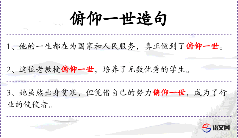 - 俯仰一世:形容一生都在努力奋斗。