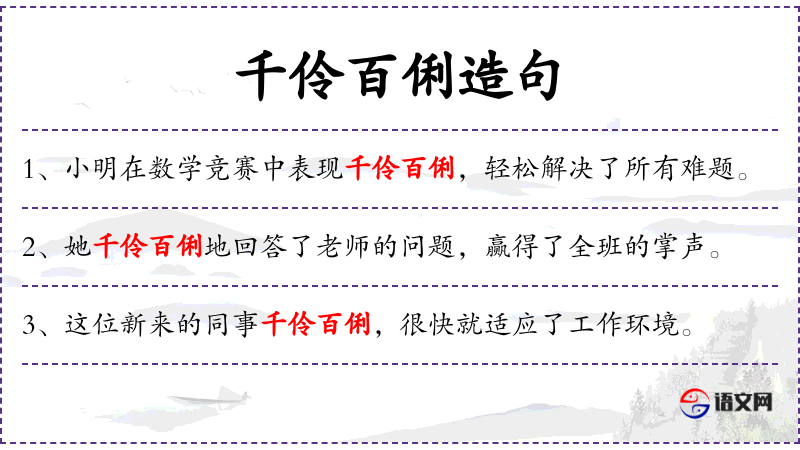 - 千伶百俐:这个成语源自**传统文化,用来形容人的技艺或动作非常灵活、巧妙。