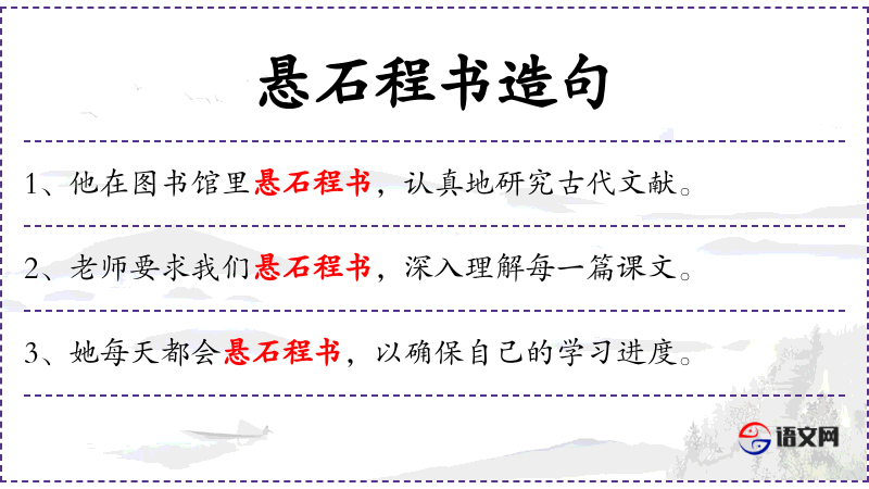 - 悬石程书:这个成语源自古代,形容书写时非常认真,力求精确。在现代,它常用来形容对工作的严谨态度。