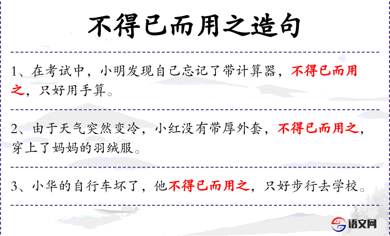 - 不得已而用之:表示在没有其他选择的情况下使用某物。 *. 用手机:使用手机作为工具。
