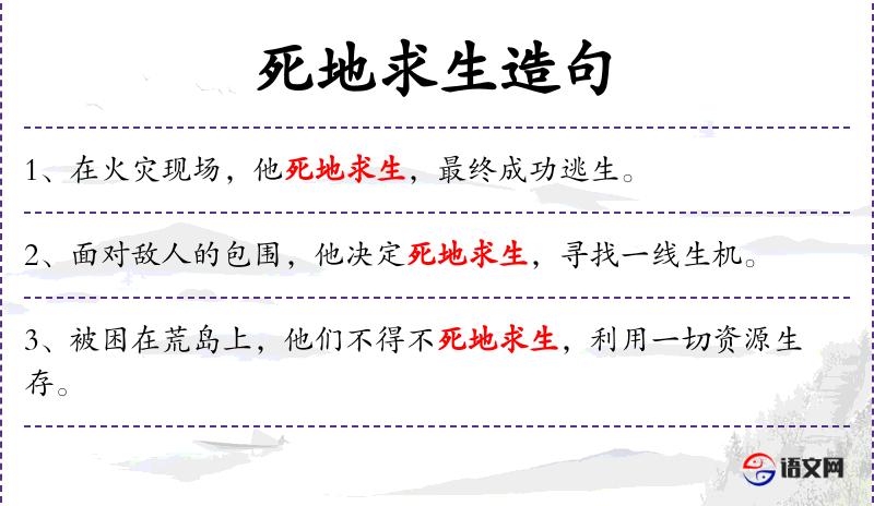 4. 【死地求生】 在极危险的境地中求取生存。