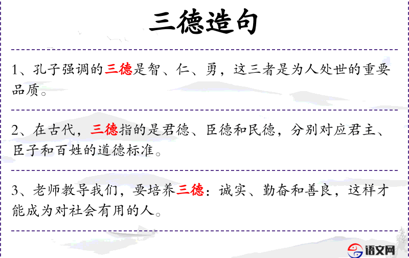 1. 【三德】 - 三种品德。随文而异; 即三老; 指狐的三种特性。