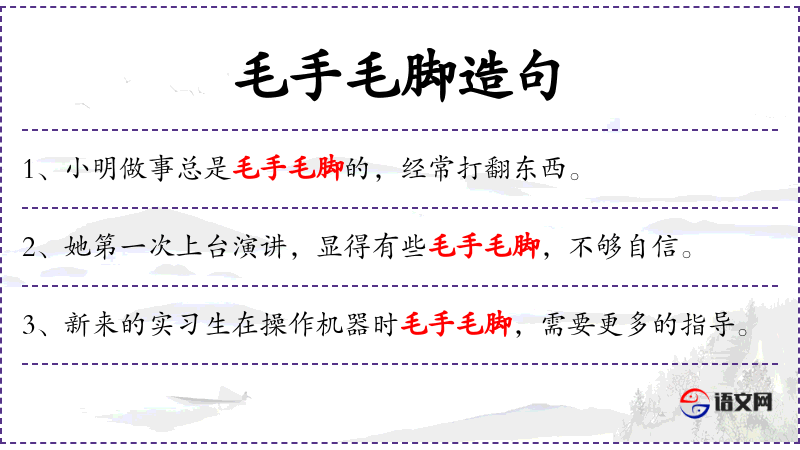 1. 【毛手毛脚】 - 毛:举动轻率。做事粗心,不细致。