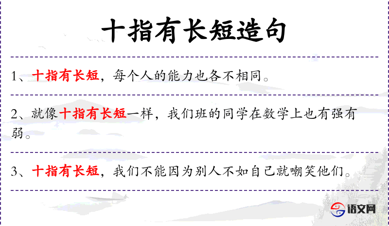 句子中的“十指有长短”是一个传统的比喻,源自于日常生活中对十指长短不一的观察,用以比喻人各有所长,各有所短。这个比喻在文化中广泛使用,用以提醒人们在评价他人时要全面和公正。