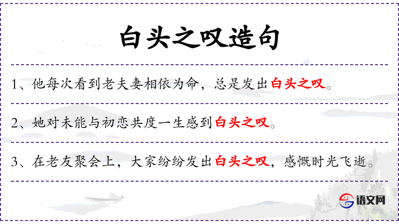 2. 【白头之叹】 - 指妇女被遗弃而作晚景凄凉之叹。
