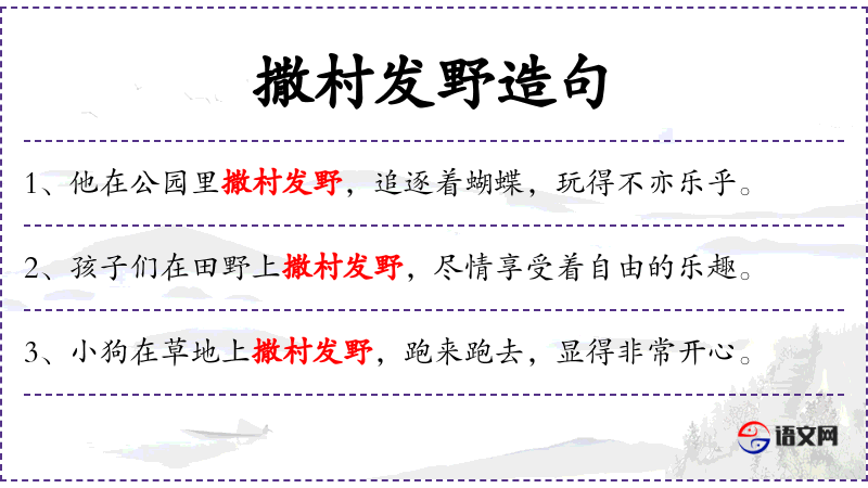 - 撒村发野:这个短语在中文中不常见,可能是一种方言表达,意指在花园中随意活动,不受拘束。
