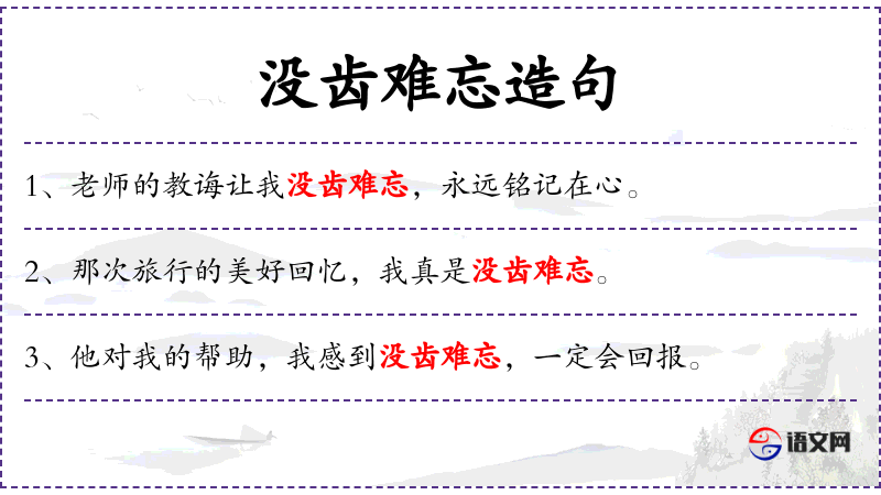 3. 【没齿难忘】 - 没齿:终身。一辈子也忘不了。