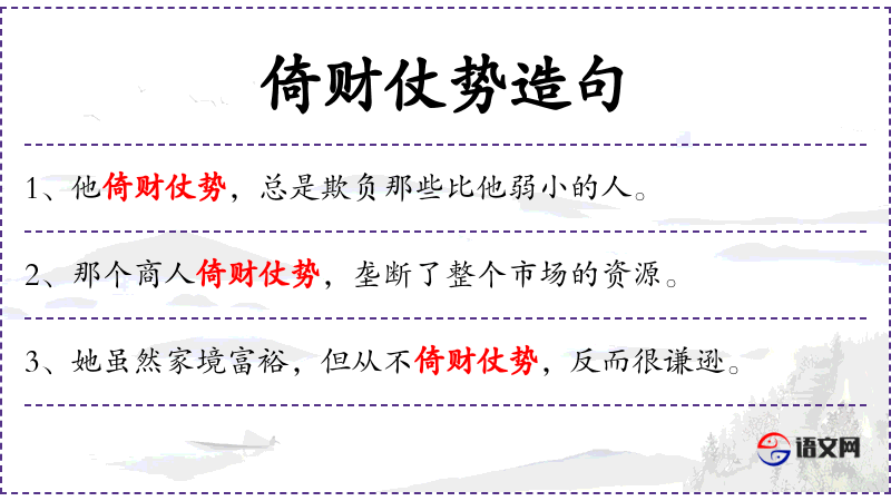- 倚财仗势:指依靠财富和权势。