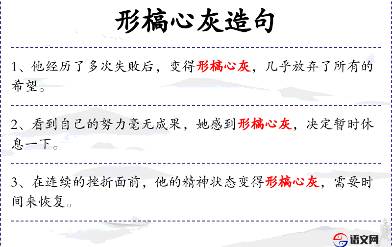- 形槁心灰:形容人因长期的精神压力而变得憔悴和沮丧。