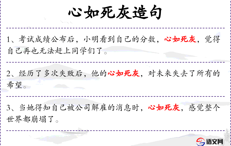 - “心如死灰”是一个成语,源自**传统文化,形容极度沮丧的心情。