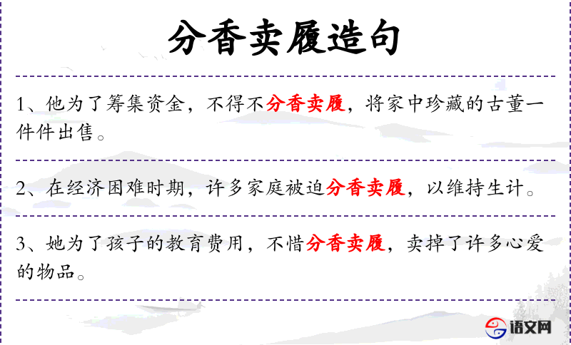- 分香卖履:字面意思是分开香料和鞋子来卖,这里指变卖各种物品
