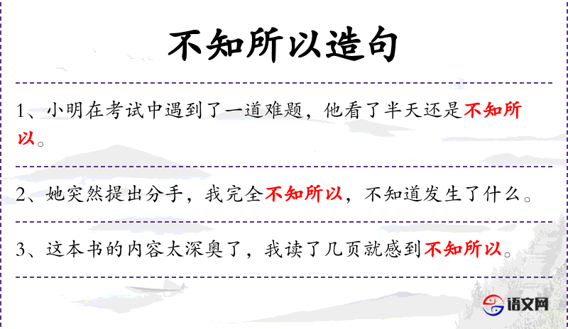 - 不知所以:表示对某事感到困惑,不明白原因或结果。