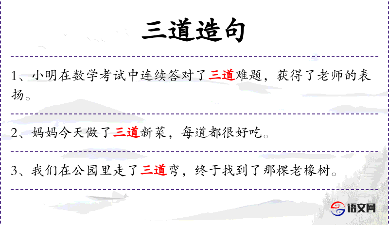 1. 【三道】 - 指人子事亲的三种孝道,即生养﹑死葬和祭祀; 三路; 指国体﹑人事﹑直言; 三道试题; 指古代军事理论上的正道,奇道,伏道。