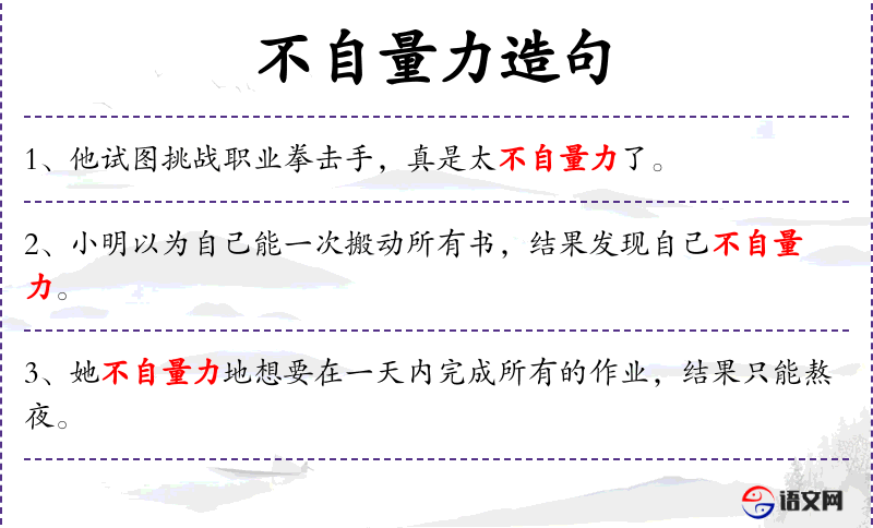 - 句子中的“不自量力”是一个成语,反映了**文化中对自我认知和行为合理性的重视。