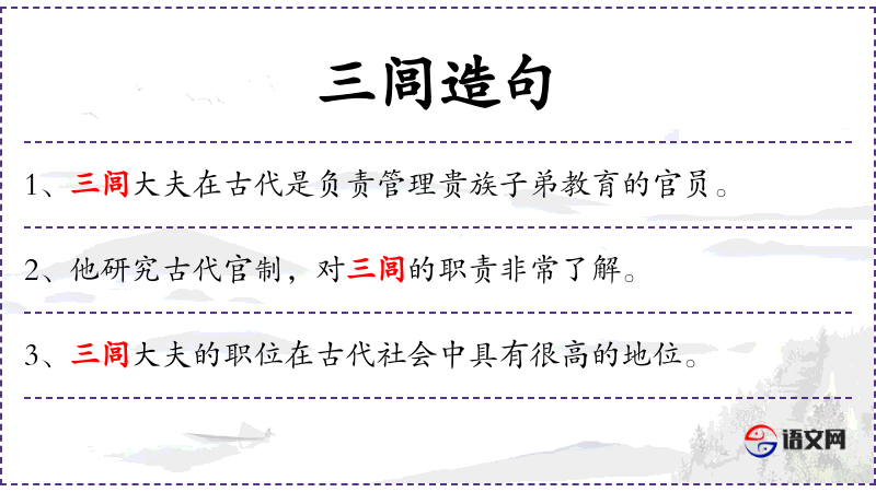 1. 【三闾大夫】 战国楚官名,掌昭﹑屈﹑景三姓贵族。屈原曾任此职。
