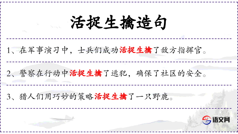 3. 【活捉生擒】 - 擒:捕捉。活着被抓住。