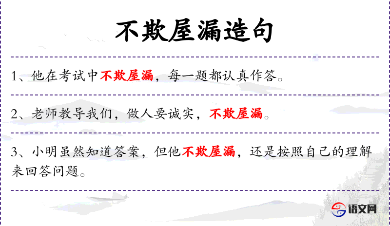 - 不欺屋漏:成语,原意是指即使在无人看见的地方也不做坏事,这里引申为在绘画时也严格要求自己,不因无人监督而放松。