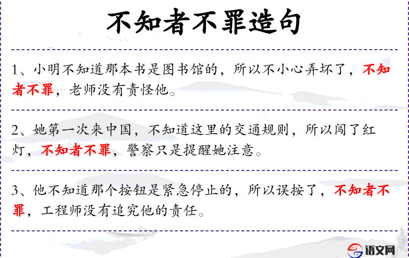 - “不知者不罪”是一种礼貌用语,用于减轻责任或责备。