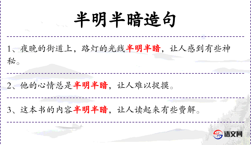 - 半明半暗:暧昧、模糊、不明确