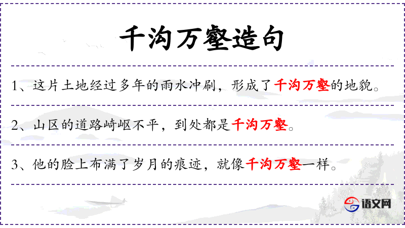 句子:“这片土地经过多年的雨水冲刷,形成了千沟万壑的地貌。”