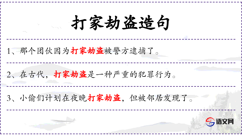 - 打家劫盗:指入室盗窃。