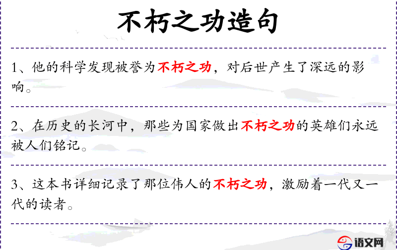 - 不朽之功:指永恒的、不会被遗忘的成就。