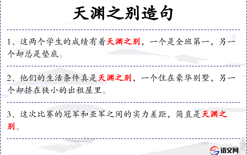 - 宾语:“天渊之别”