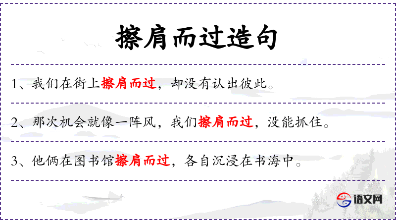- 擦肩而过:动词短语,比喻错过机会或重要**。