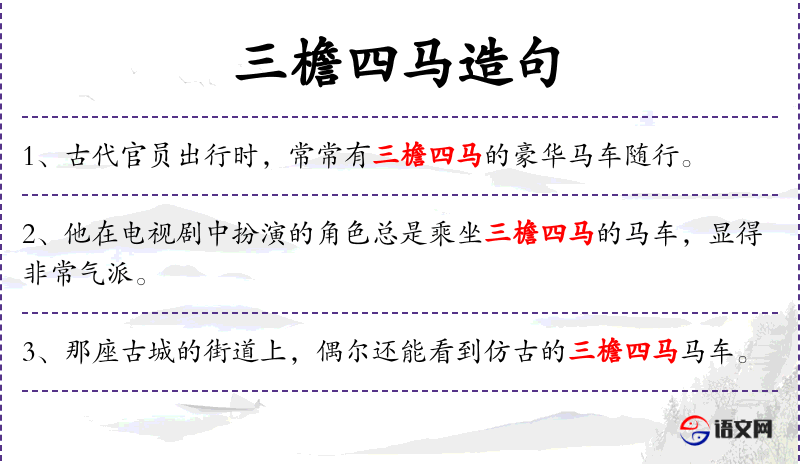 1. 【三檐四马】 - 三层伞盖﹑四马并驾的车。为古代贵官之车乘。