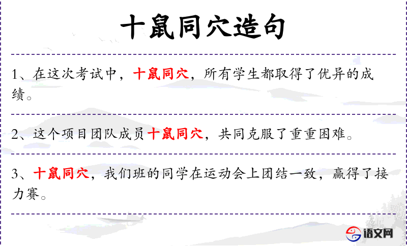 - 十鼠同穴:这个成语源自古代,反映了人对团结和协作的重视。