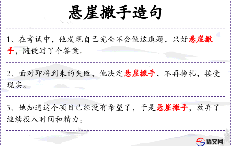 - 悬崖撒手:成语,比喻在危急关头放弃。