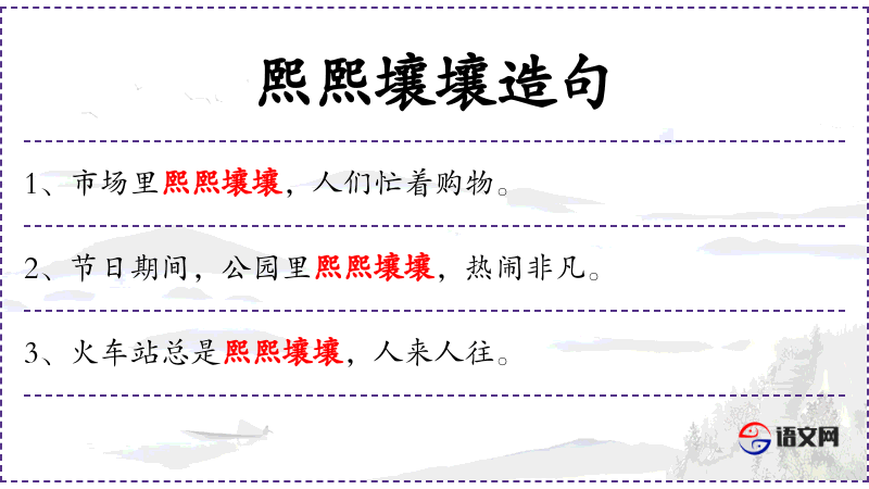 1. 【熙熙壤壤】 - 形容人来人往,喧闹纷杂。壤,通“攘”。