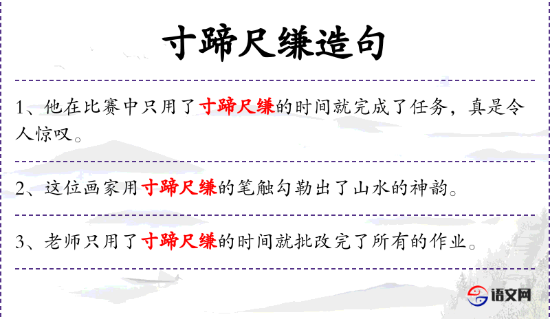 - 状语:用寸蹄尺缣的手法