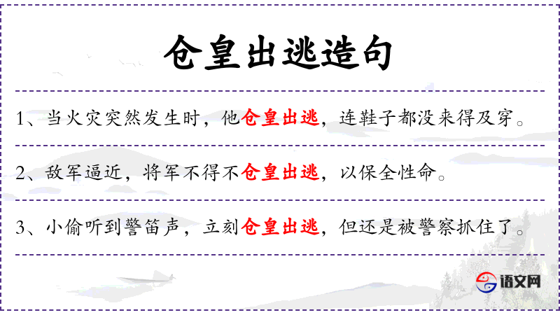 - 谓语:不得不仓皇出逃
