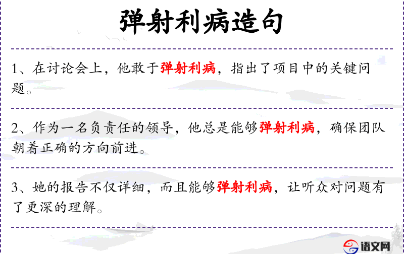 2. 【弹射利病】 弹射:直率地指摘;病:弊病。直率的批评有利于改正缺点和错误。