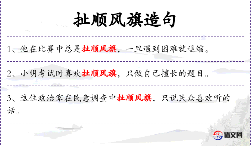 - 扯顺风旗:源自**传统文化,比喻随大流,不主动承担责任。