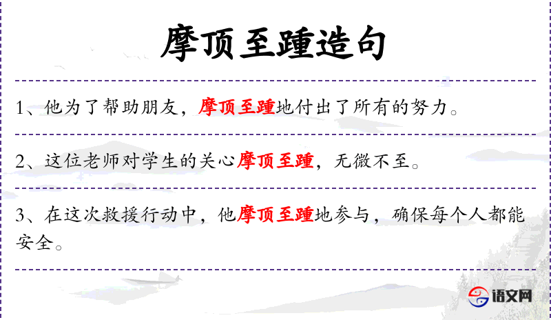 - 摩顶至踵:这个成语源自**古代,形容照顾得非常周到,从头到脚都考虑到。