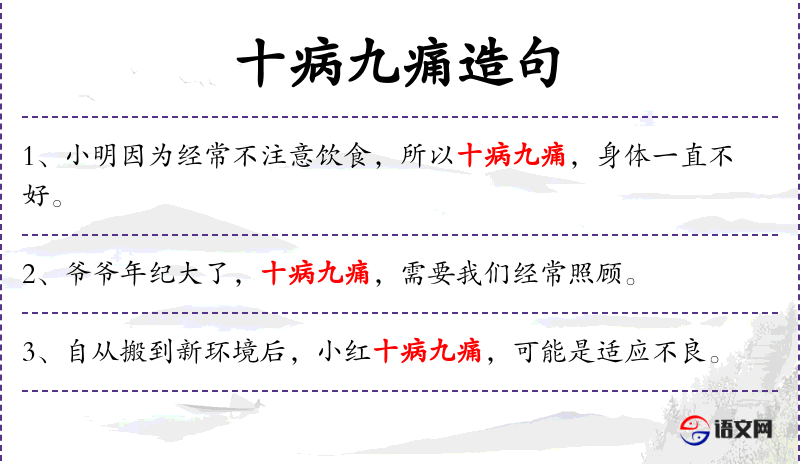 - 十病九痛:成语,形容身体多病,常感不适。