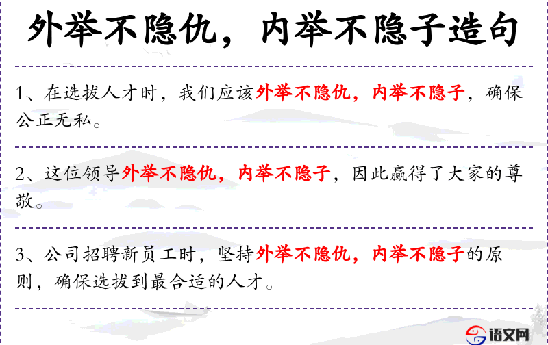 - 内举不隐子:指在私下场合不隐藏对某人的偏爱或支持。