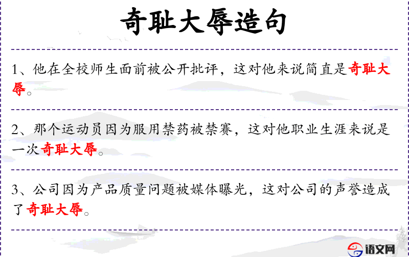 - 奇耻大辱:成语,表示极大的耻辱