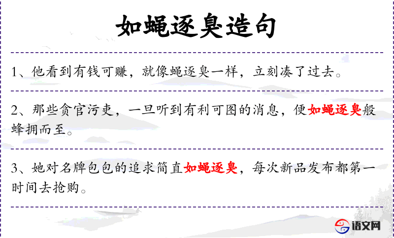 句子中的“如蝇逐臭”是一个成语,源自**传统文化,用来形容对某种事物的极度渴望或追求。这个成语在现代汉语中仍然常用,但通常带有贬义色彩。