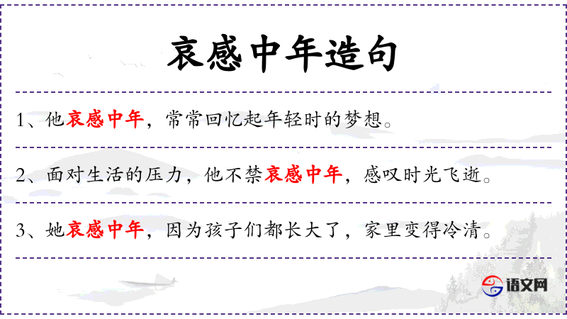 1. 【哀感中年】 形容人到中年对亲友离别的伤感情绪。