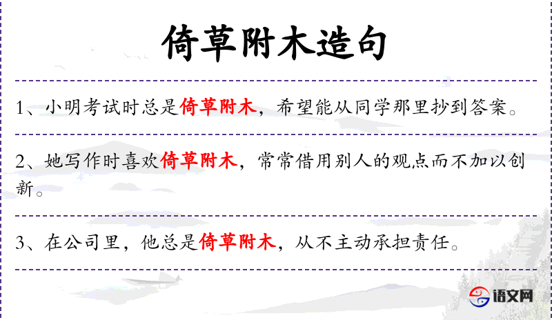 句子:“这个学生的作业明显是倚草附木,抄袭了网上的资料。”
