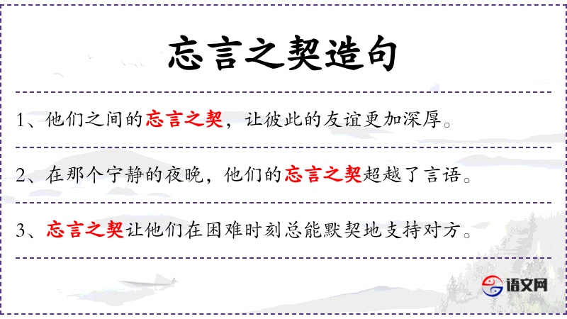 “忘言之契”这个成语源自传统文化,强调的是人与人之间的心灵相通和默契。这种表达方式体现了文化中重视人际关系和情感交流的特点。