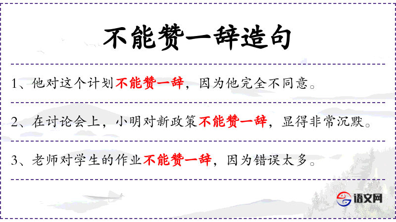2. 【不能赞一辞】 - 赞:赞助;赞一辞:添一句话。提不出一点意见。形容文章非常完美。