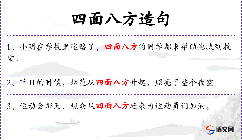 1. 【四面八方】 指各个方面或各个地方。